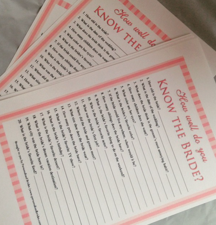 It’s easy to set up, fun for all ages, and gives guests a cute peek into the couple’s relationship. Plus, the unexpected answers always create memorable moments for the bride-to-be.
