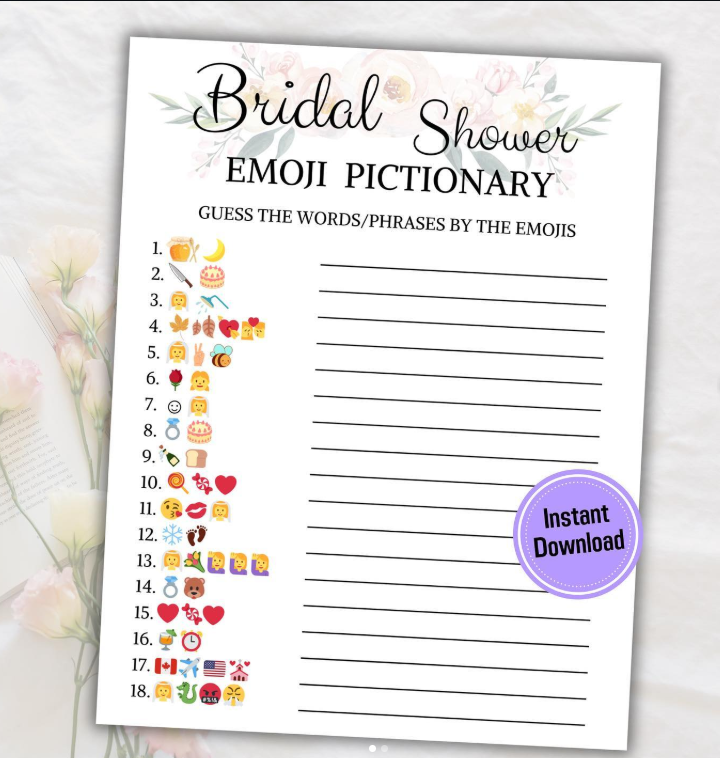 Use emojis to describe wedding movies, love songs, or romantic phrases and let guests guess. It’s super easy to set up, hilarious to play, and always a hit on Instagram bridal pages.