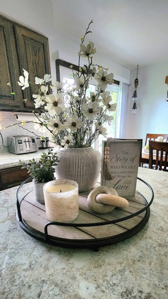 Wood textures and greenery bring in that warm farmhouse vibe instantly.