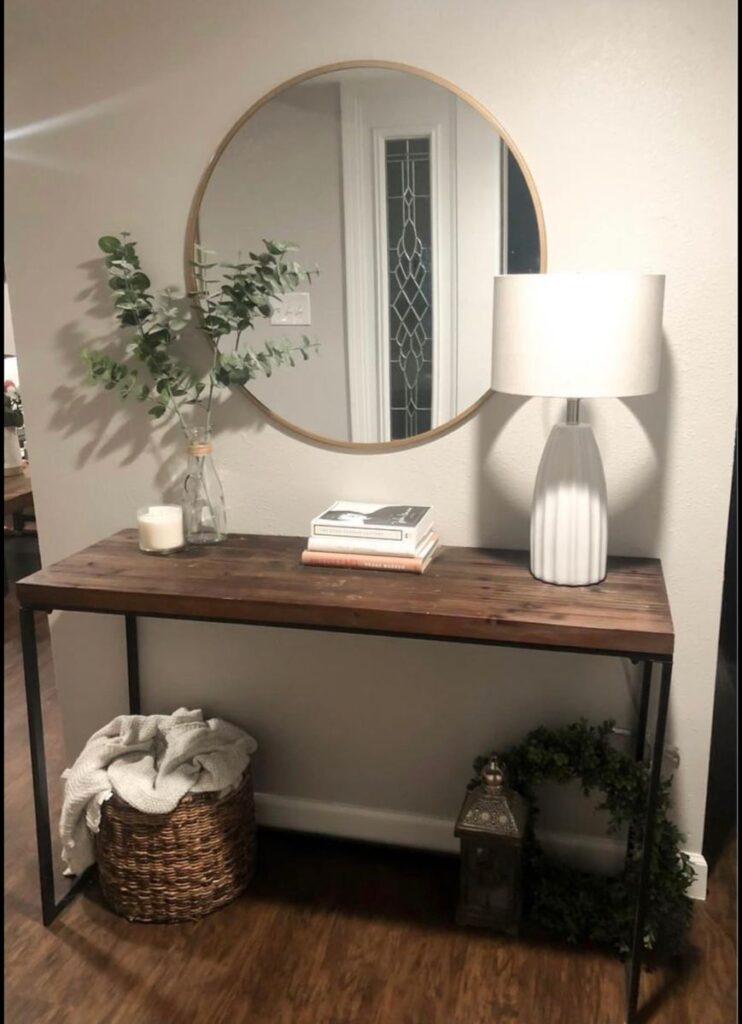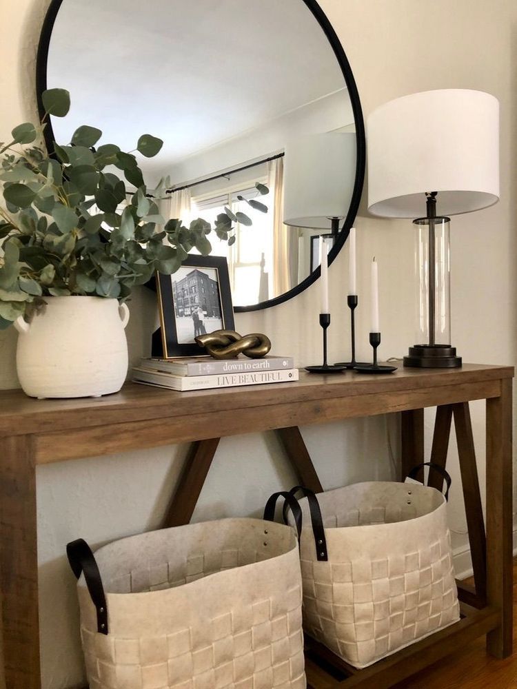 With the right mix of mirrors, baskets, plants, and decorative accents, even a small console table can look elegant and functional.