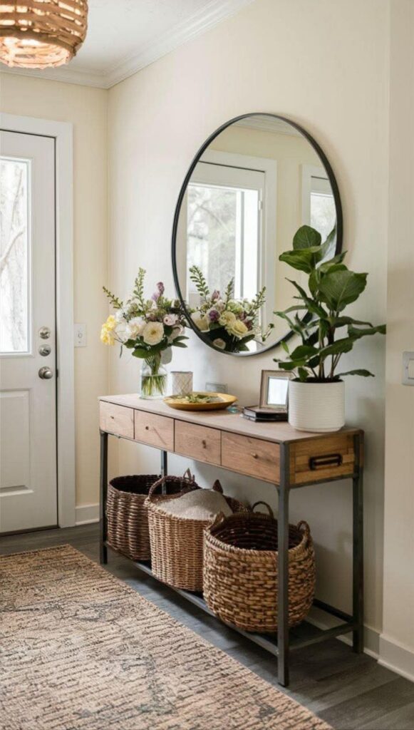 5. Cozy Entryway Styling with Storage Baskets