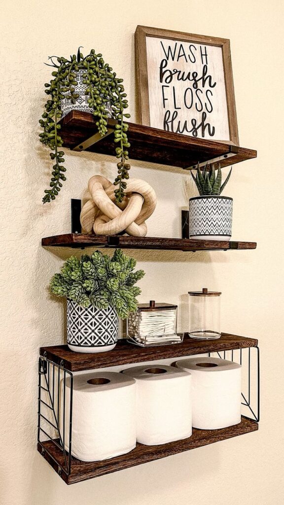 These wooden shelves mix decor and function in the best way possible.