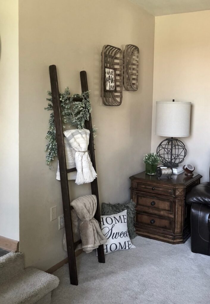 A blanket ladder with soft throws instantly adds texture to any corner.