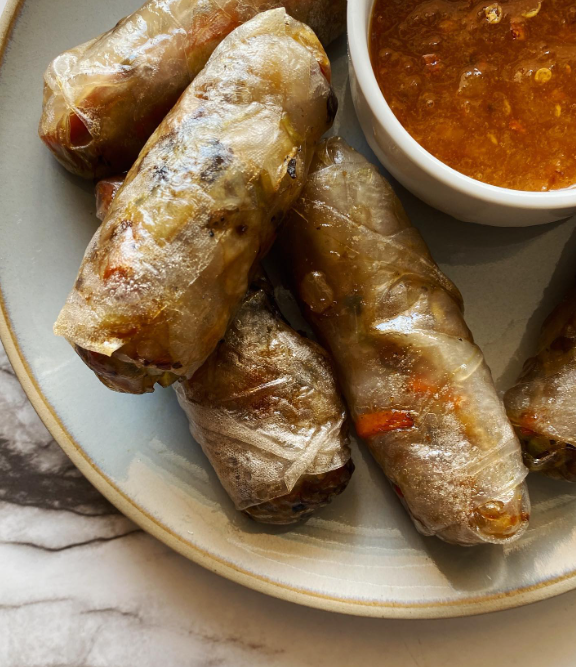 Crispy on the outside, juicy and flavorful inside — these air-fried rice paper rolls give you that deep-fried crunch without the heavy oil. Perfect for dipping into a sweet chili or soy-based sauce for an addictive snack.