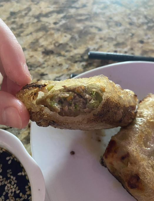 Crisped to perfection with a juicy, seasoned pork filling inside. Each bite gives you that satisfying crunch followed by tender, flavorful goodness — especially when dipped in soy and sesame sauce.